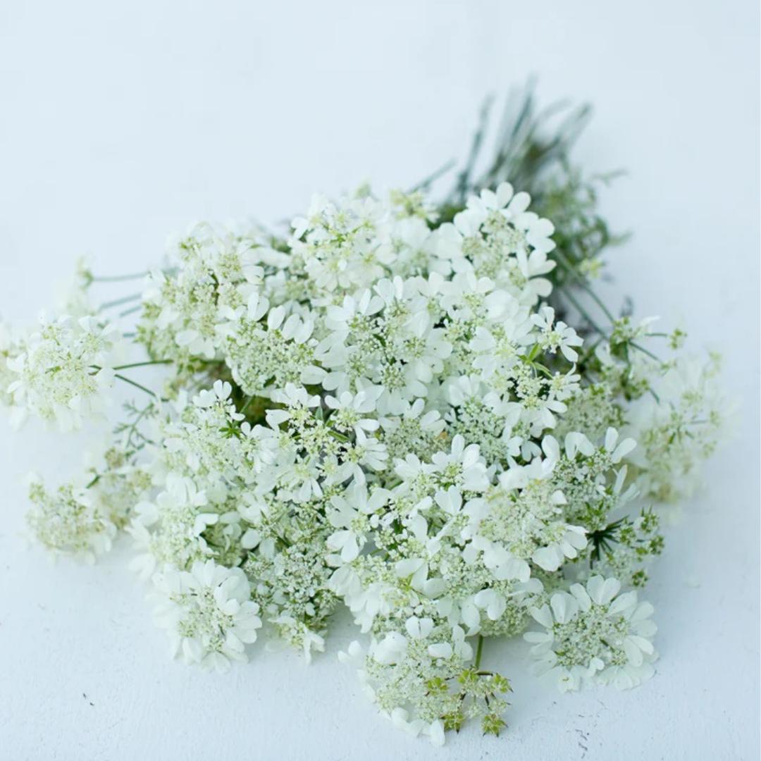 ازهار هاد النبات ناعمة ورقيقة بتزهر من نهاية فصل الشتاء حتى نهاية فصل الربيع بتعطي ازهار على شكل دسك مليان بالازهار البيضاء الناعمة وكل ما قطفنا ازهار من هاد النبات كل ما اعطانا تفرعات بزيادة خلال الموسم بالاضافة لكونه زهرة قطف رائعة وسيقان البذور بعد تشكلها كمان ممكن استخدامها بشكل مجفف